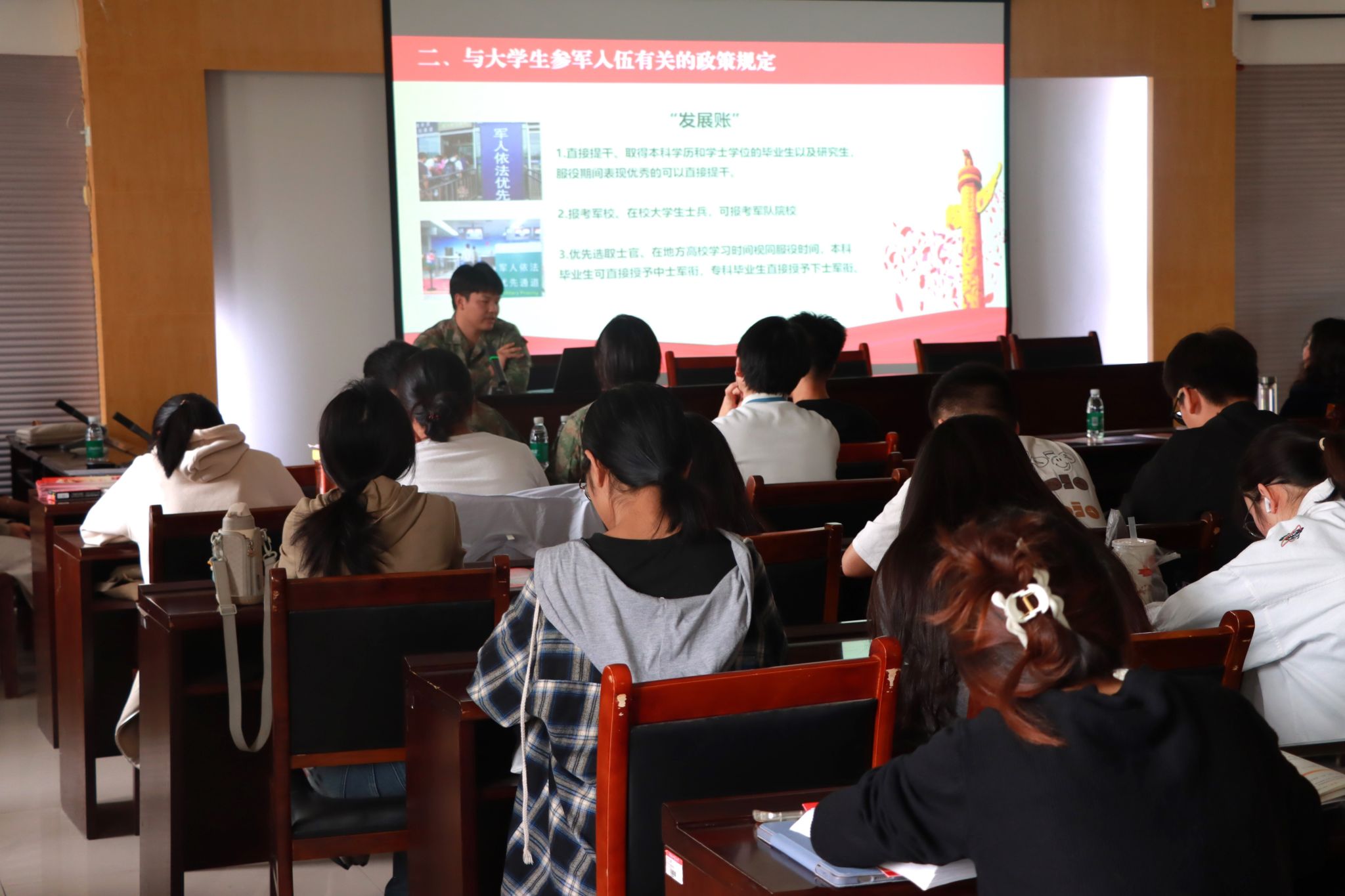 此次宣讲会,通过退役大学生代表的真实分享与政策解读,同学们对军旅生活有了更加直观的认识,对参军的意义与价值有了更加深刻的理解,参军报国的热情被充分激发,助力学生明晰参军发展路径,为军队输送优质人才奠定基础。