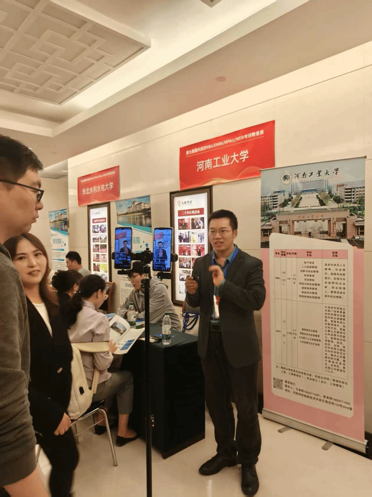 参加由郑州九鼎华章举办的第七届MBA/EMBA/MPAcc/MEM高校教育展。展会采取线上线下同步联动的形式,十余所院校招生负责人与考生集中交流,显著提升了信息获取的覆盖面与便利性。
