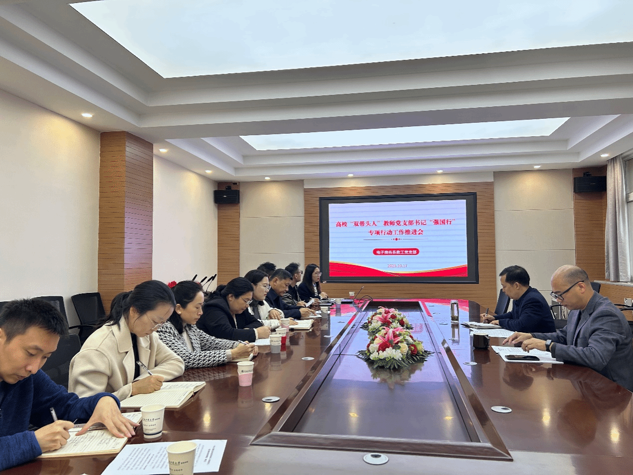在博识楼3558会议室召开了高校“双带头人”教师党支部书记“强国行”专项行动团队建设工作推进会。学院党委书记李国仓参加会议并作指导,电子商务系全体党员教师参加会议。会议由电子商务系教师党支部书记王景玫主持。