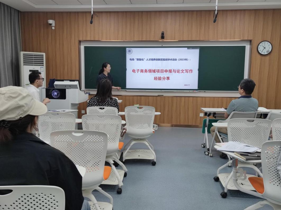 电子商务专业“数智化”创新人才培养实验班依托电子商务与商务智能科研团队于7月7日在3227智慧教室举行第二期学术交流会。本次交流会围绕“电子商务领域项目申报与论文写作经验分享”展开,交流会由徐恒教授主持。