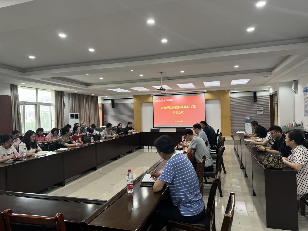 于7月9日在3558会议室召开师德失范问题专项整治工作会议。学院全体教工参加会议,会议由学院党委书记副书记魏涛主持。