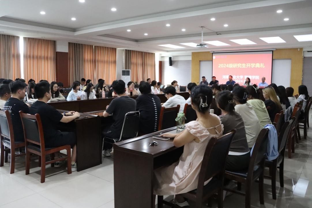 2024级研究生开学典礼在3543会议室顺利举行。学院领导班子全体成员、研究生辅导员、教师代表、老生代表及2024级全体研究生参加典礼。典礼由副院长穆庆榜主持。