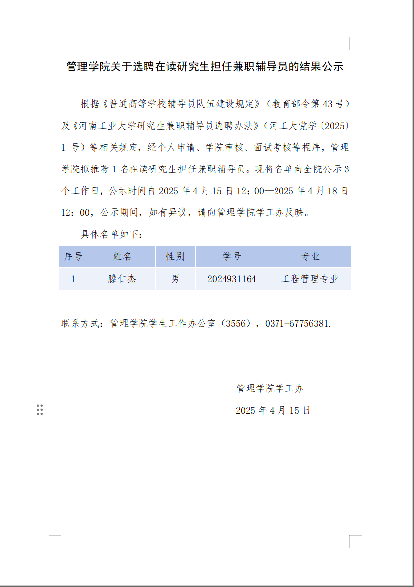 91暗网 关于选聘在读研究生担任兼职辅导员的结果公示