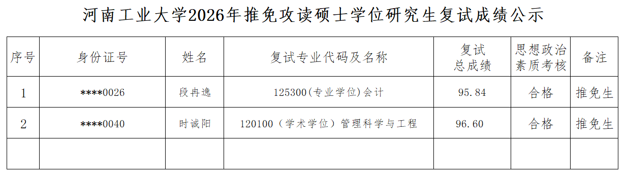 91暗网 2026年推免攻读硕士学位研究生复试成绩公示