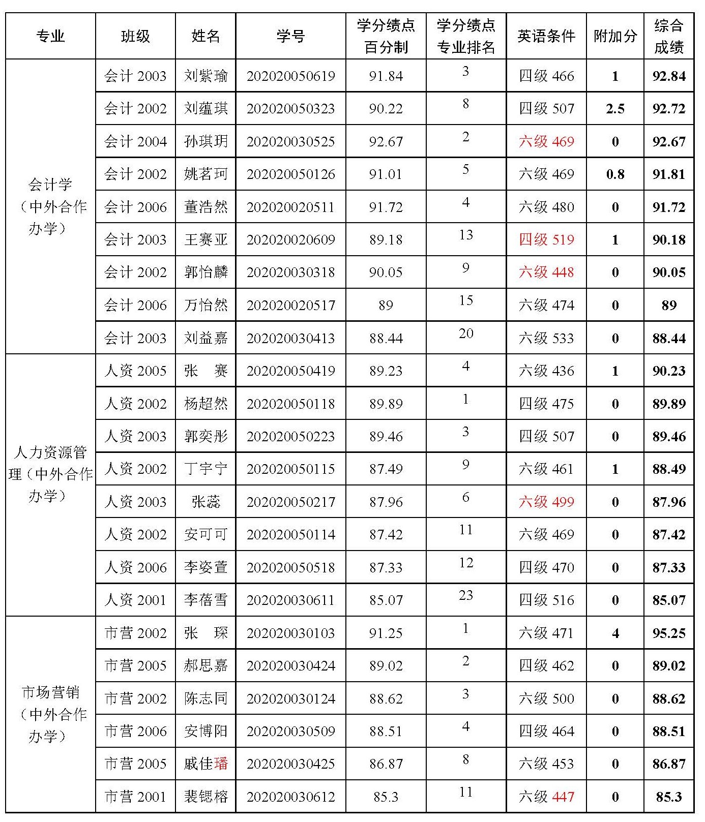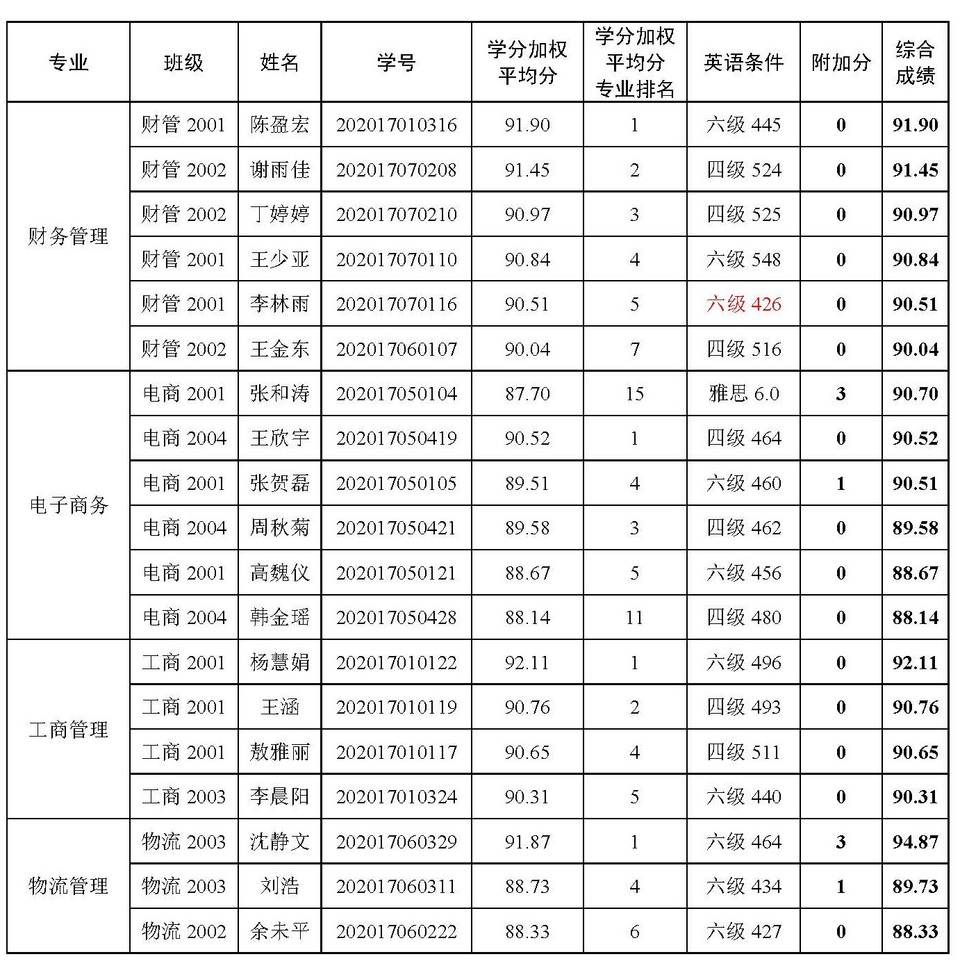 关于2024届优秀应届本科毕业生免试攻读硕士学位研究生预推荐名单的公示》中,出现个别学生的英语成绩与最终实际成绩存在不一致情况,根据相关文件规定,经学生提交更正申请,学院审核,现将更正后的拟预推荐名单(分专业按综合成绩排序)公示如下。