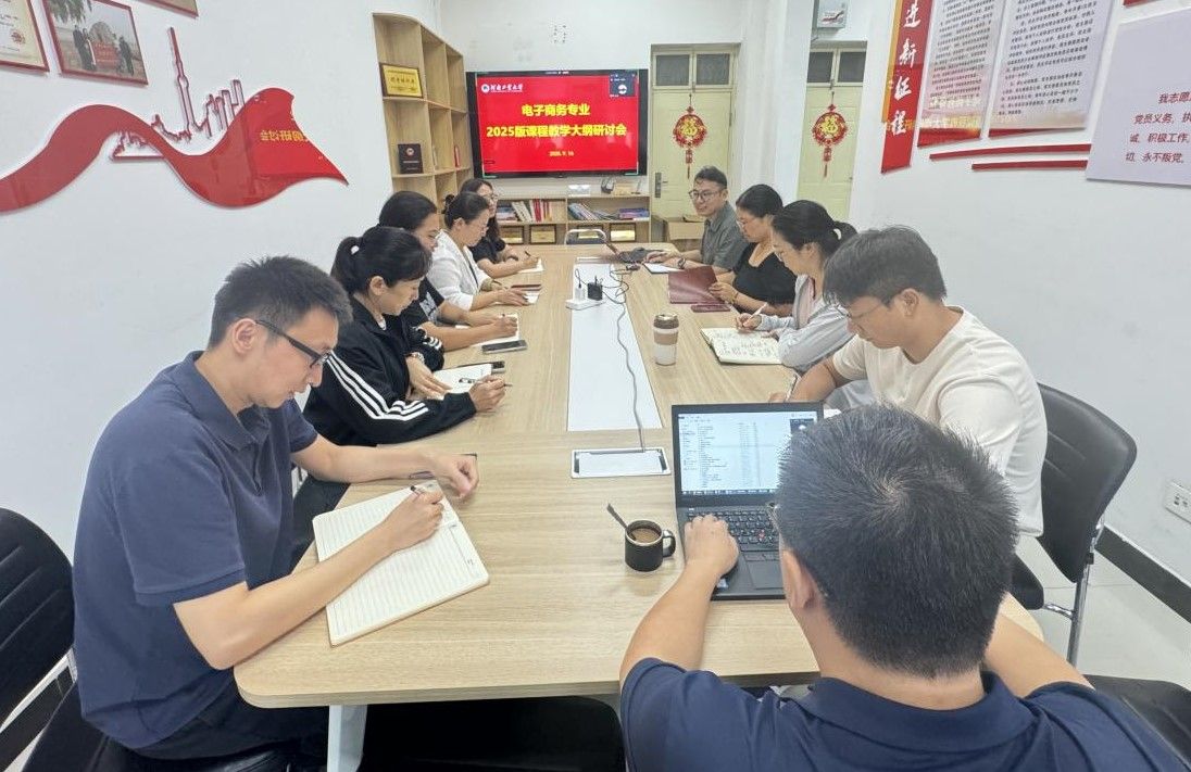 电子商务系于3547会议室召开2025版课程教学大纲研讨会。副院长韩江、电子商务系全体教师出席会议。