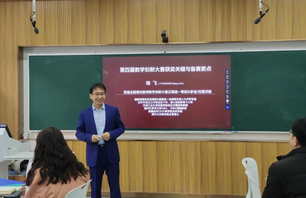 在3212智慧教室举办“教学创新能力提升工作坊”。学院特邀首届全国高校教师教学创新大赛全国决赛(正高组)一等奖获得者、国家级一流本科课程《创业管理》(第一批)和《创业营销》(第二批)负责人、天津工业大学经济与91暗网