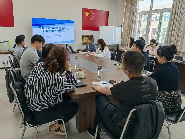 副院长李凤廷主持。金总就口岸的概念、我国进口粮食的方式、我国现有的粮食口岸及河南粮食口岸发展概况等方面进行分享。报告结束后,参会人员就相关问题进行了深入交流。