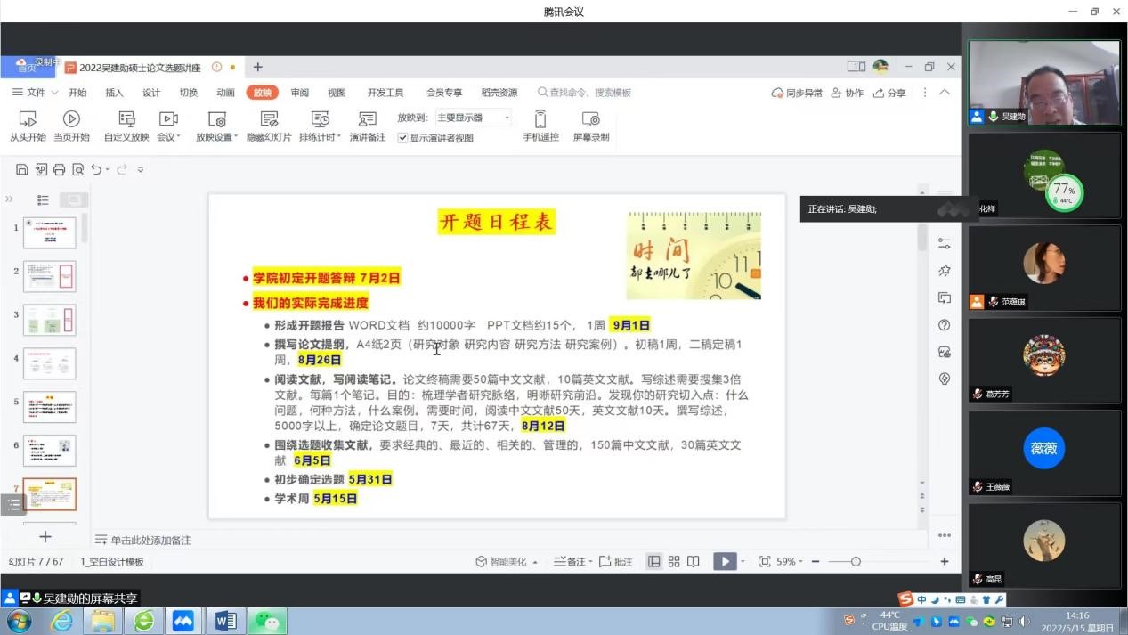 吴建勋教授以《毕业论文写作系列讲座之选题》为主题,讲授了开题报告、论文选题、毕业论文和学术论文撰写要求等方面的规范及要求,并根据每个学生拟定的论文标题,指出存在的漏洞和不足,给出详实建议,课堂气氛热烈。