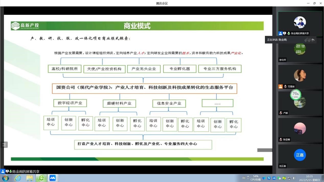15日上午,郑州高新产投集团总经理、上市公司董事陈金阁以《公司战略与个人职业生涯》为题,通过自身创业经历以及案例分析,从企业战略规划、股权激励、运营管理等方面,介绍了投资和金融业务发展之间的联系,并线上解答学生疑虑,加深学生理解与领悟。