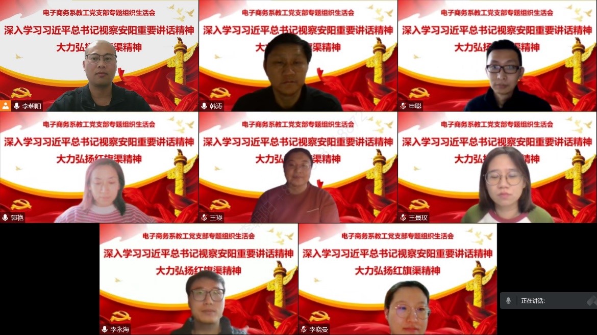 为深入学习贯彻党的二十大精神和习近平总书记视察安阳重要讲话精神,深刻领会红旗渠精神的丰富内涵和时代价值,更好发挥共产党员先锋模范作用,11月18日,电子商务系教工党支部以“深入学习习近平总书记视察安阳重要讲话精神,大力弘扬红旗渠精神”为主题,召开专题组织生活会。