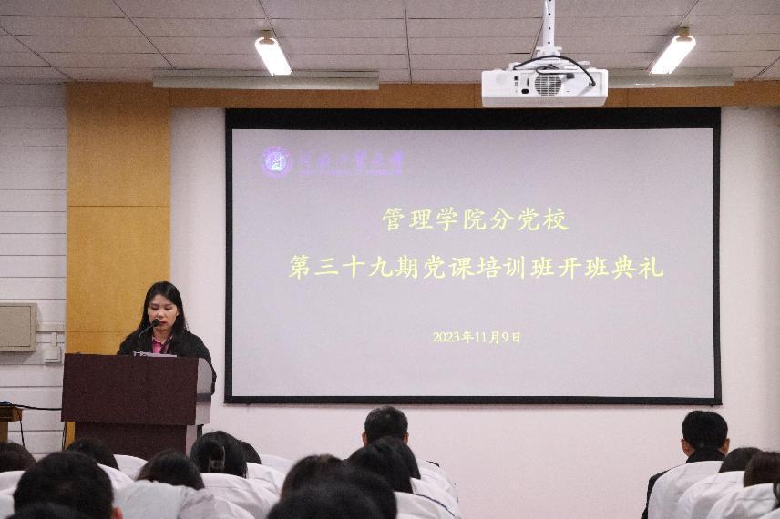 第三十九期入党积极分子培训班纪律要求》,她强调同学们必须严格要求自己,遵守党校的各项纪律要求。学员代表马琳在发言中表示,作为一名入党积极分子,会认真参加党课学习,严格遵守纪律,以最饱满的精神面貌,最积极的态度,最切实的行动来完成党课学习,成为优秀学员,实现组织上入党、思想上入党、行动上入党。
