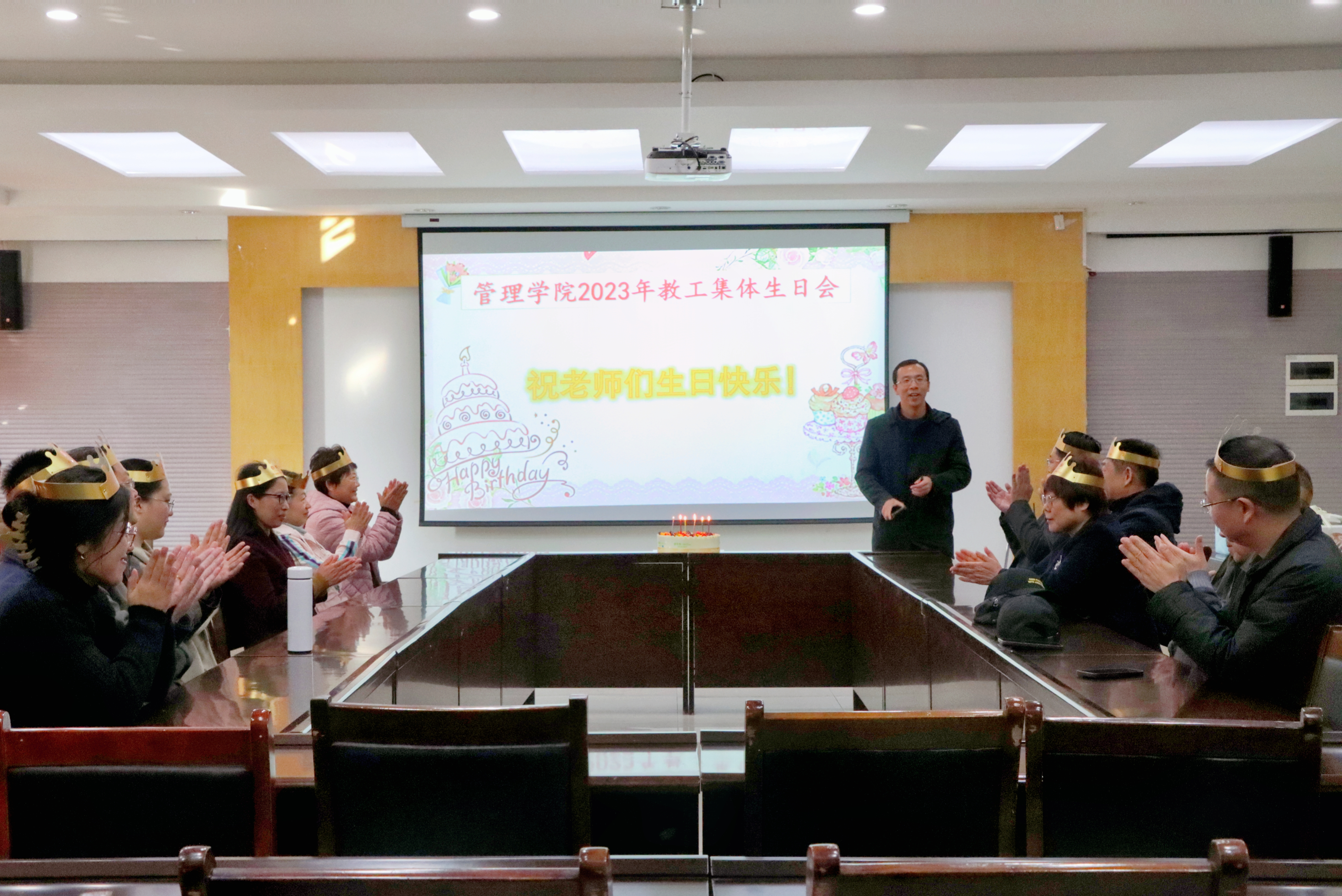 举办2023年教职工集体生日会。学院班子成员、各系工会负责人参加此次活动。生日会由院党委副书记、工会主席魏涛主持。