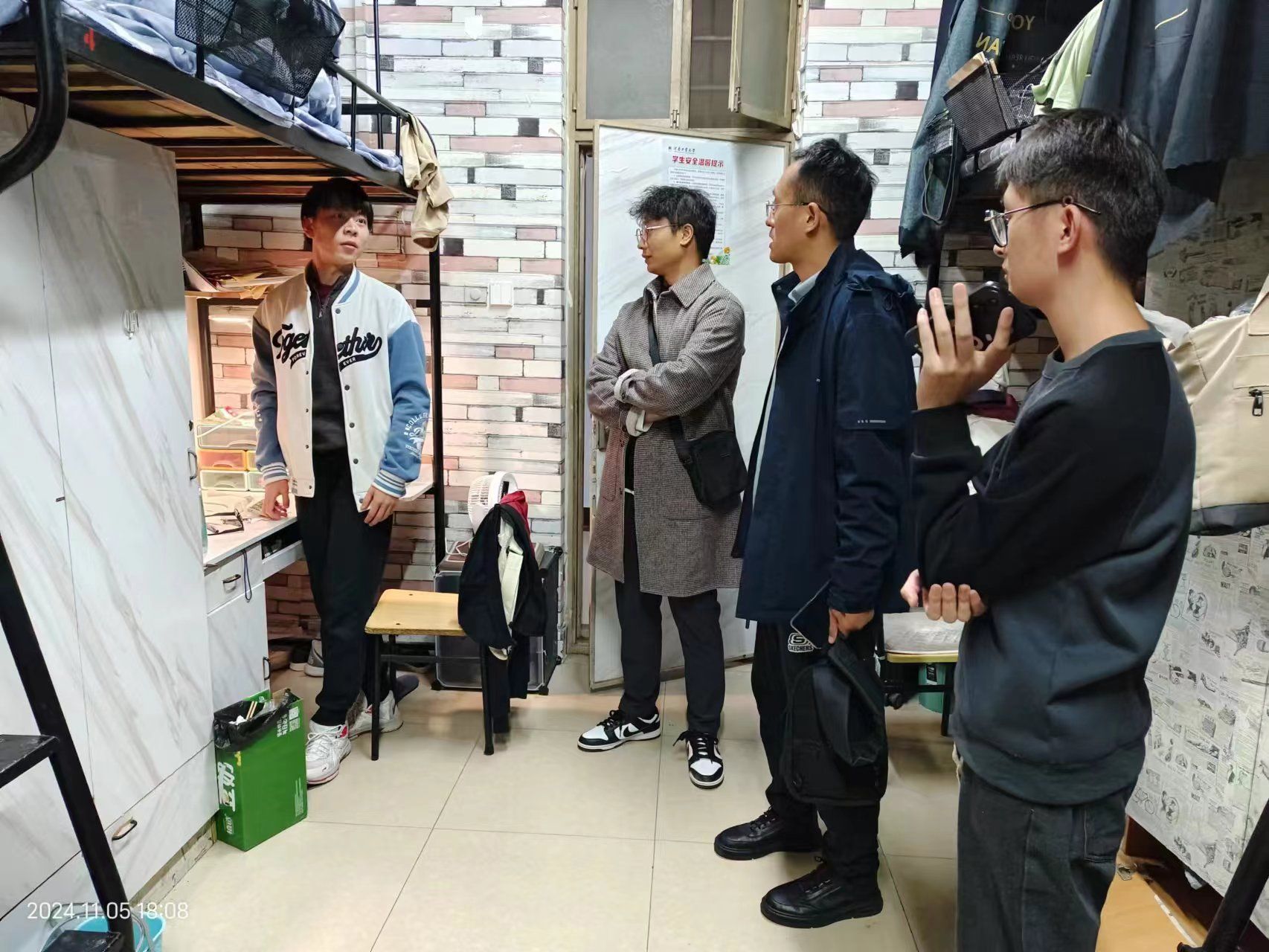 朱家稷和王志刚老师深入勤园社区男生宿舍C03,了解同学们生活情况,给予了针对性的建议和帮助。他们强调良好的宿舍环境是保障学生健康和学习效率的重要因素,同时还提醒学生们要提高自我保护意识,注意个人财物安全,倡导同学们共同维护一个舒适安全的生活学习环境。