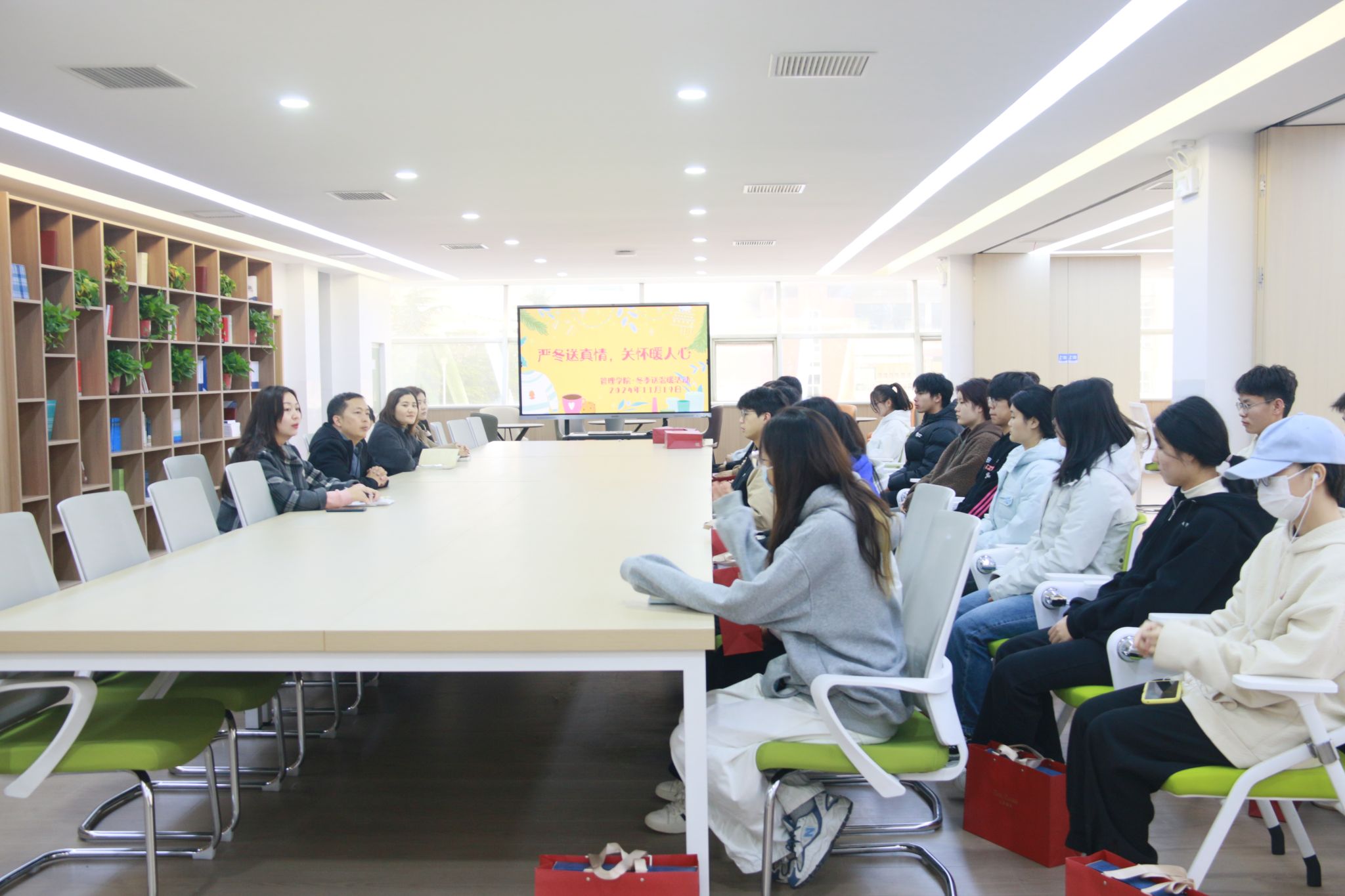 在德园一站式社区举行“严冬送真情,关怀暖人心”冬季送温暖活动,学院党委书记李国仓、副书记曹启娥、23级辅导员肖雪川、冯梅及全体受助学生代表参加。活动由学工办主任王风云主持。