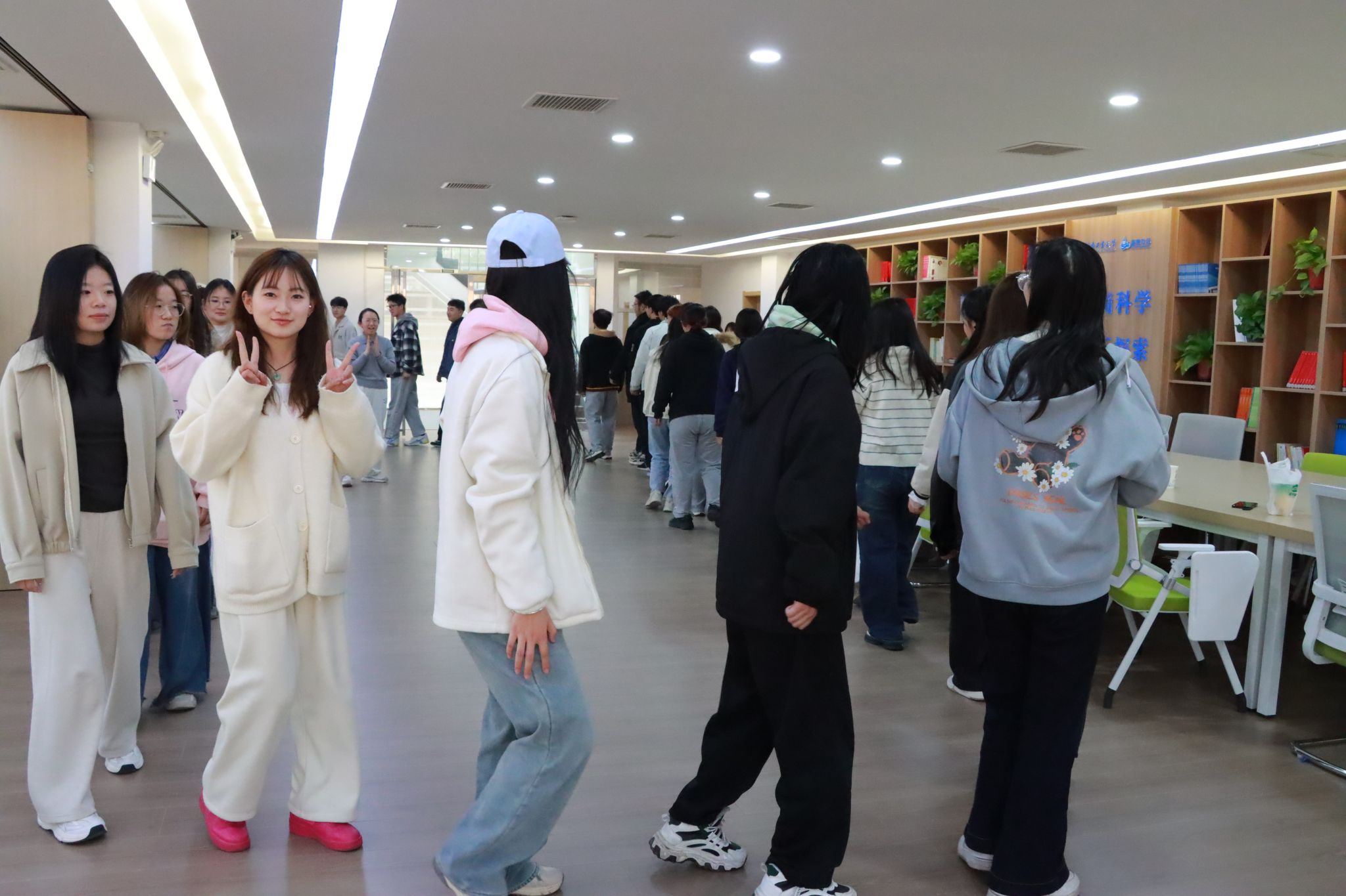 活动伊始,张佳晨组织同学们通过肢体语言生动演绎“天气预报”,大家用丰富的动作分别表现晴天、雨天和暴雨等不同天气状态。在欢声笑语中,同学们逐渐打破了初识的拘谨,现场气氛轻松而融洽。在随后的“滚雪球”环节中,同学们依次复述前一位同学的自我介绍并补充自己的信息,如同滚雪球一般,信息链条越来越长,形成了妙趣横生的“滚雪球”效应。这一环节不仅点燃了现场的热烈气氛,更让同学们在欢声笑语中迅速拉近了彼此的距离。