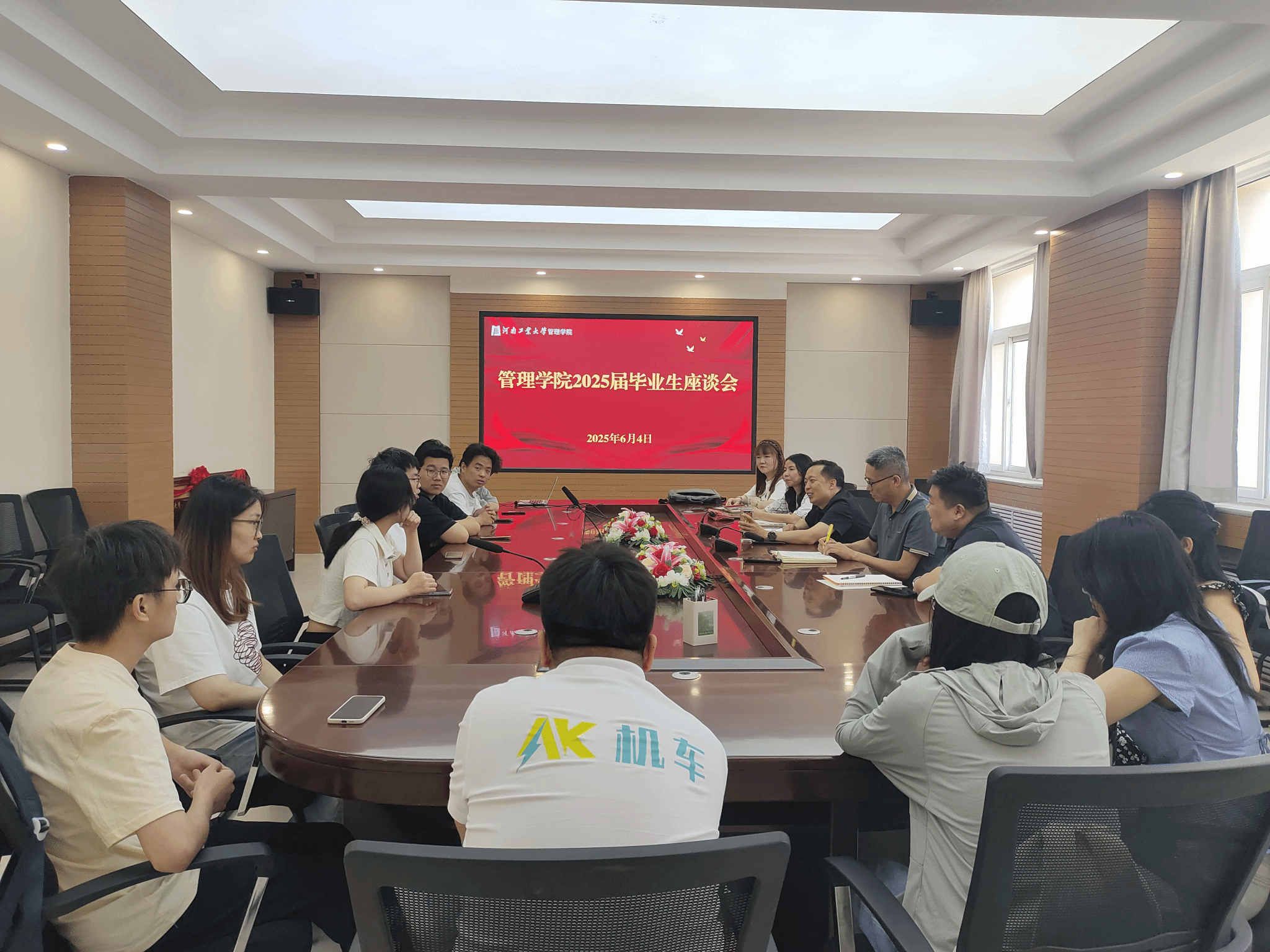 在博识楼3558会议室召开2025届毕业生座谈会。学院党委书记李国仓、院长李凤廷、毕业班辅导员以及毕业生代表参加会议。座谈会由学院党委副书记曹启娥主持。