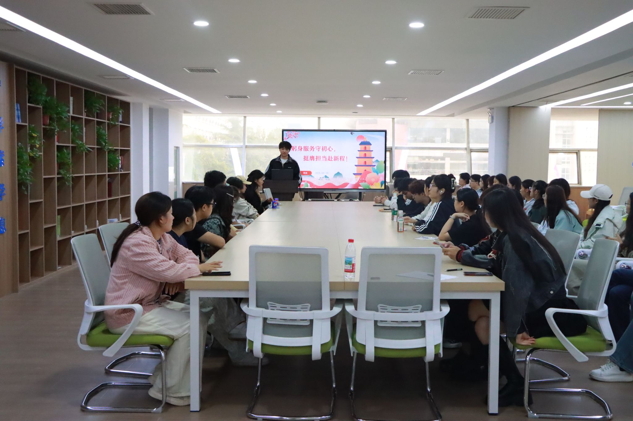 在德园“一站式”学生社区三楼举办了以“躬身服务守初心,挺膺担当赴新程”为主题的管理之星论坛,此次论坛邀请2023级物流管理专业郑焘进行经验分享,各班级学生干部参加会议,论坛由学生会执行主席郑焘主持。