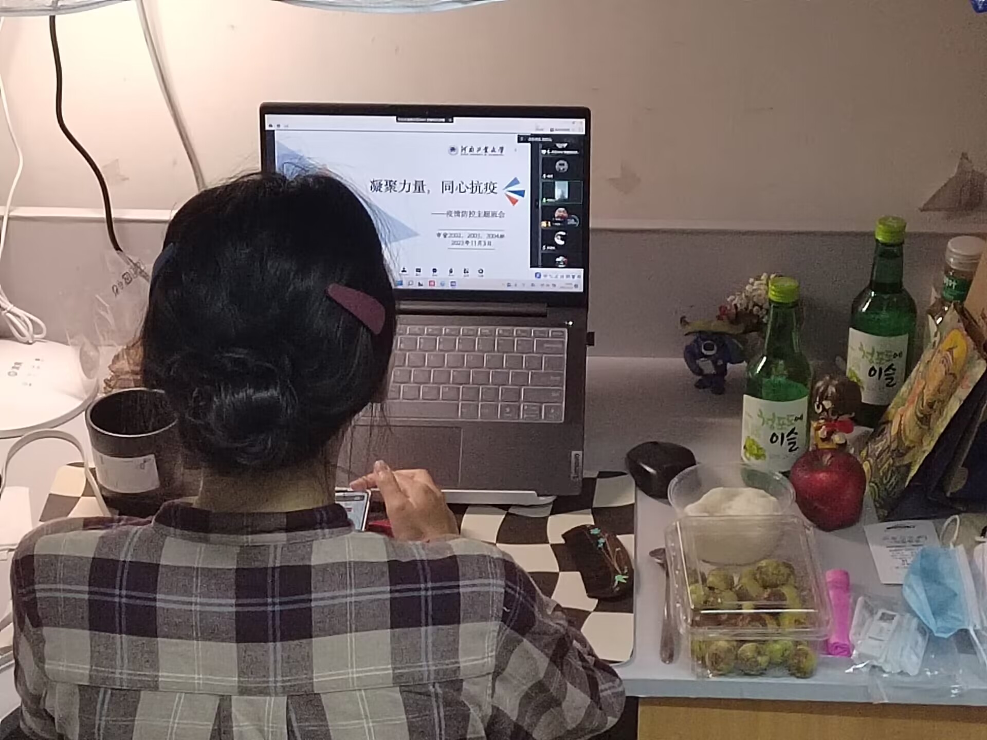 在主题班会上,各位班主任讲解了当前全国、郑州市、学校的疫情形势和防控政策,通过宣传我校师生的“最美逆行者”例子,引导同学们思考和交流“在疫情下的我们,如何合理安排学习生活与我们能做点什么”“同心抗疫如何彰显青春担当”。班主任们还分别提出了一些要求:一是提升防疫意识,遵守防控要求。希望同学们以疫情防控为己任,出宿舍佩戴口罩,多喝水穿厚衣,宿舍勤通风,坚持全员核酸、抗原检测和日报告、零报告制度,筑牢疫情防控防线;二是做好情绪管理,养成良好作息。希望同学们在宿舍做些瑜伽、拉伸等小幅度锻炼,增强自身体质,做好疫情下的情绪管理,养成良好生活习惯,用科学的防疫方式、稳定的情绪和健康的心态,积极面对、共克时艰;三是提高学习质量,搞好宿舍关系。希望同学们上好线上课,做好学习计划,提升自我学习能力,同时与舍友互帮互助,团结友爱。四是知校爱校荣校,传播榜样力量。希望同学们在特殊时期,多理解多体谅,与母校并肩作战,吃得了苦打得了仗,以我校“最美逆行者”师生为荣,传递榜样的正能量。