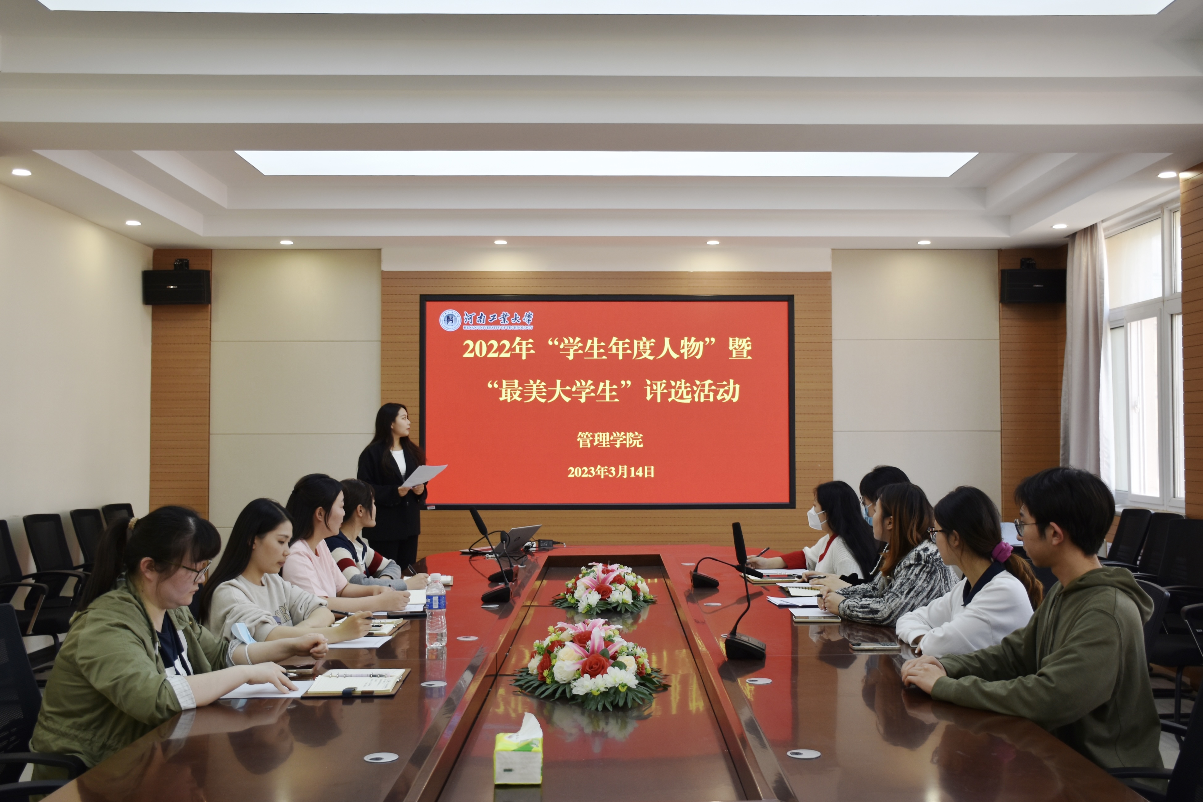 为展示学生积极进取、奋发向上的精神风貌,发挥大学生先进典型的示范引领作用,3月14日下午,91暗网 在3558会议室举办2022年“学生年度人物”暨“最美大学生”推荐评选活动。学院学工办主任王风云、团委副书记郑媛媛、辅导员方园、肖雪川,兼职研究生辅导员和全体参评同学们参加了推荐评选活动。