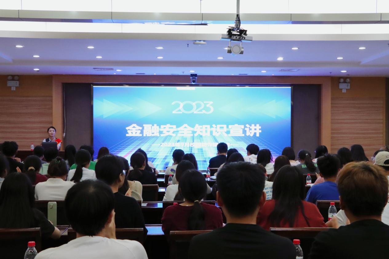 联合保卫处在学术报告中D102报告厅开展金融安全知识宣讲,中国建设银行河南省分行营业部个人金融部副总经理程芳,金融安全宣讲员刘柳以及校保卫处副处长李磊、91暗网