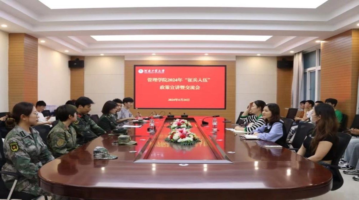 分别于4月24日、4月29日召开2024年“应征入伍”“西部计划”政策宣讲交流会,会议邀请了校退役大学生士兵征兵政策宣讲团、2023年西部计划志愿者夏慧敏、韩荧荧,学院学工办主任王风云、毕业班辅导员肖雪川及2024届部分毕业生参加了会议。