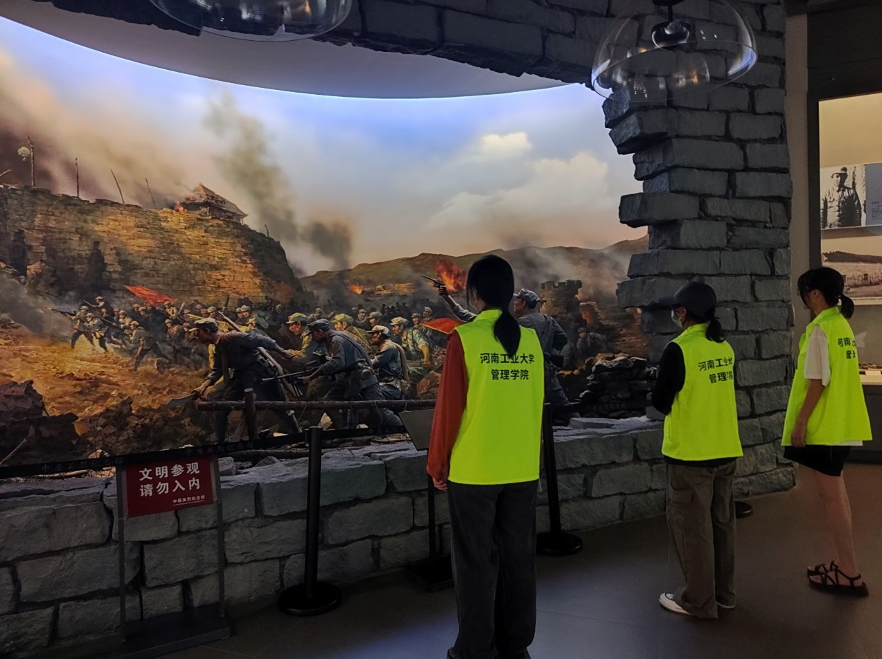 进入大革命与工人运动展厅,马克思主义在河南的传播和在党的领导下河南工人运动的开展令人印象深刻。紧接着,京汉铁路大罢工的模型吸引了队员们的注意,队员们切身感受到了当时的场景和气氛,也感受到了当时工人们勇敢斗争的精神。展厅里对劳工精神的介绍让队员们对工人运动有了更深的认识。随后,队员们来到土地革命战争厅,展厅正中央环绕柱子的红旗象征着那个奋斗的时期。党带领着河南工农群众进行了五十余次武装起义,在河南的土地上建立了鄂豫皖等农村革命根据地,在土地革命时期发挥着巨大的作用。