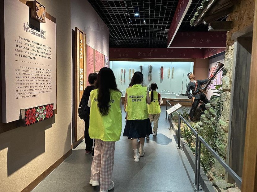 下午三点,团队成员们来到了瑶族博物馆,博物馆作为精神文明,物质文明传承的载体,通过文化展览及介绍,能够帮助队员们建立主动探求知识,渴求历史文化真相的精神取向。在瑶族博物馆中,团队成员们了解了瑶族的迁移和发展历史,看到了瑶族各个分支精美的饰品以及各式各样的民族传统服装,还通过精致的模型与介绍了解到许多瑶族传统习俗文化。随后,团队成员们来到瑶族非遗文创展示中心,通过店员姐姐的讲解,队员们认识到了许多传统瑶族文化与现代元素碰撞产生的精美产品,例如改良后的瑶族服装,在更加方便人们日常穿着的同时,还保留原本瑶族传统民族服装的特点,轻便又精美。通过在瑶族博物馆以及瑶族非遗文创展示中心的参观,团队成员们感受到了瑶族文化的魅力,在瑶族文化和特有民俗与各种现代文化的结合中,感悟到了民族团结对于中华民族伟大复兴的必要性。