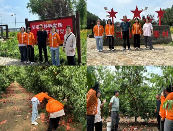 第二站,团队来到了桃园,随着微风的吹拂,成片成片的桃树在风中舞蹈。桃园负责人为大家讲解了桃树的栽种,养护和桃子摘取,保存,以及售卖的方法。随后梁支书带大家参观了范寨村的党史文化,听他讲述村子历史故事。团队成员漫步在历史的海洋里,在党史文化的熏陶下更加坚定信念。