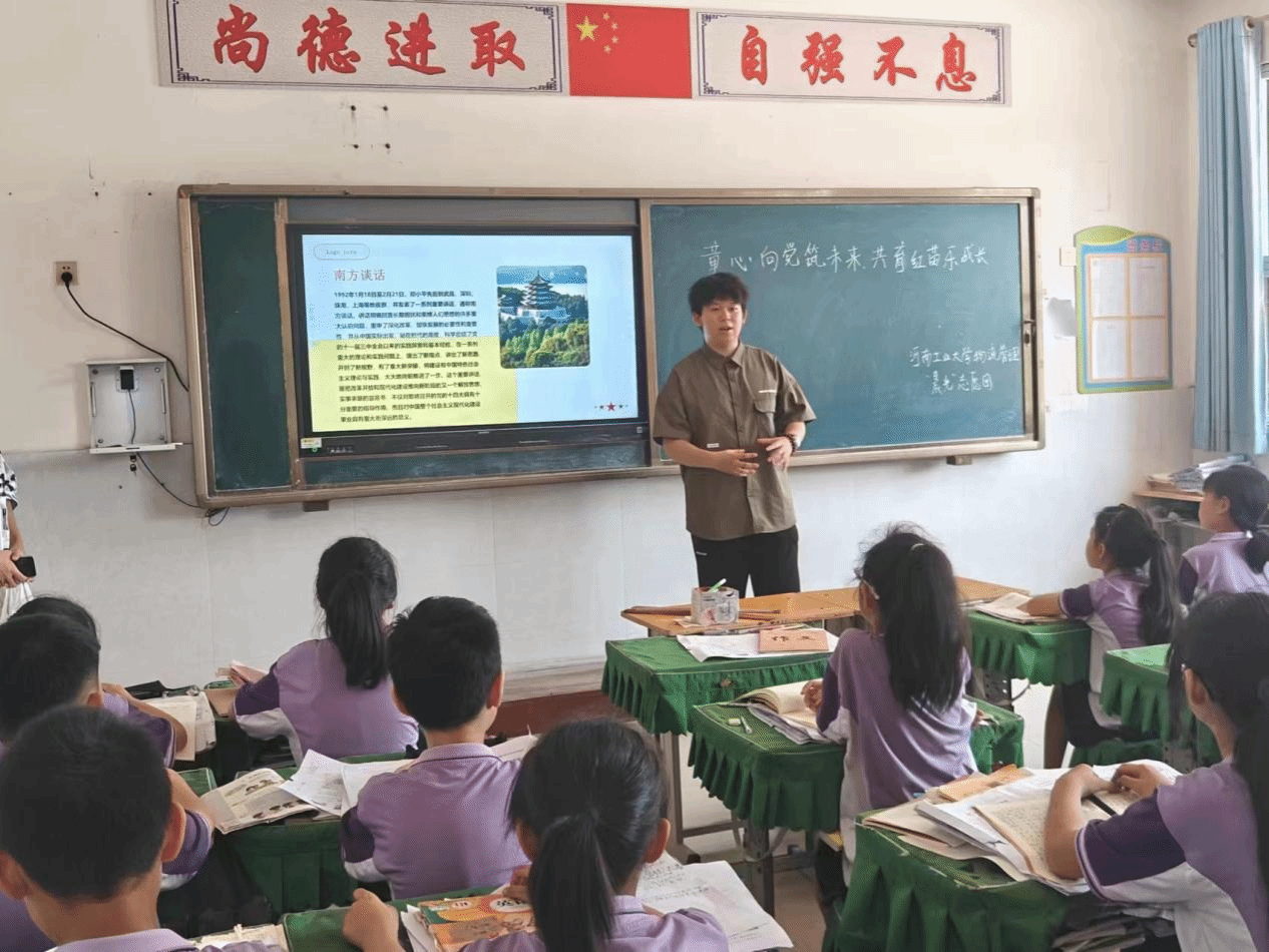 “共育红苗,齐固党心实践队”实践团前往安阳市内黄县田氏镇第六小学进行党史学习教育,旨在弘扬红色文化,加强红色教育,帮助小学生从小树立爱党敬业的意识。