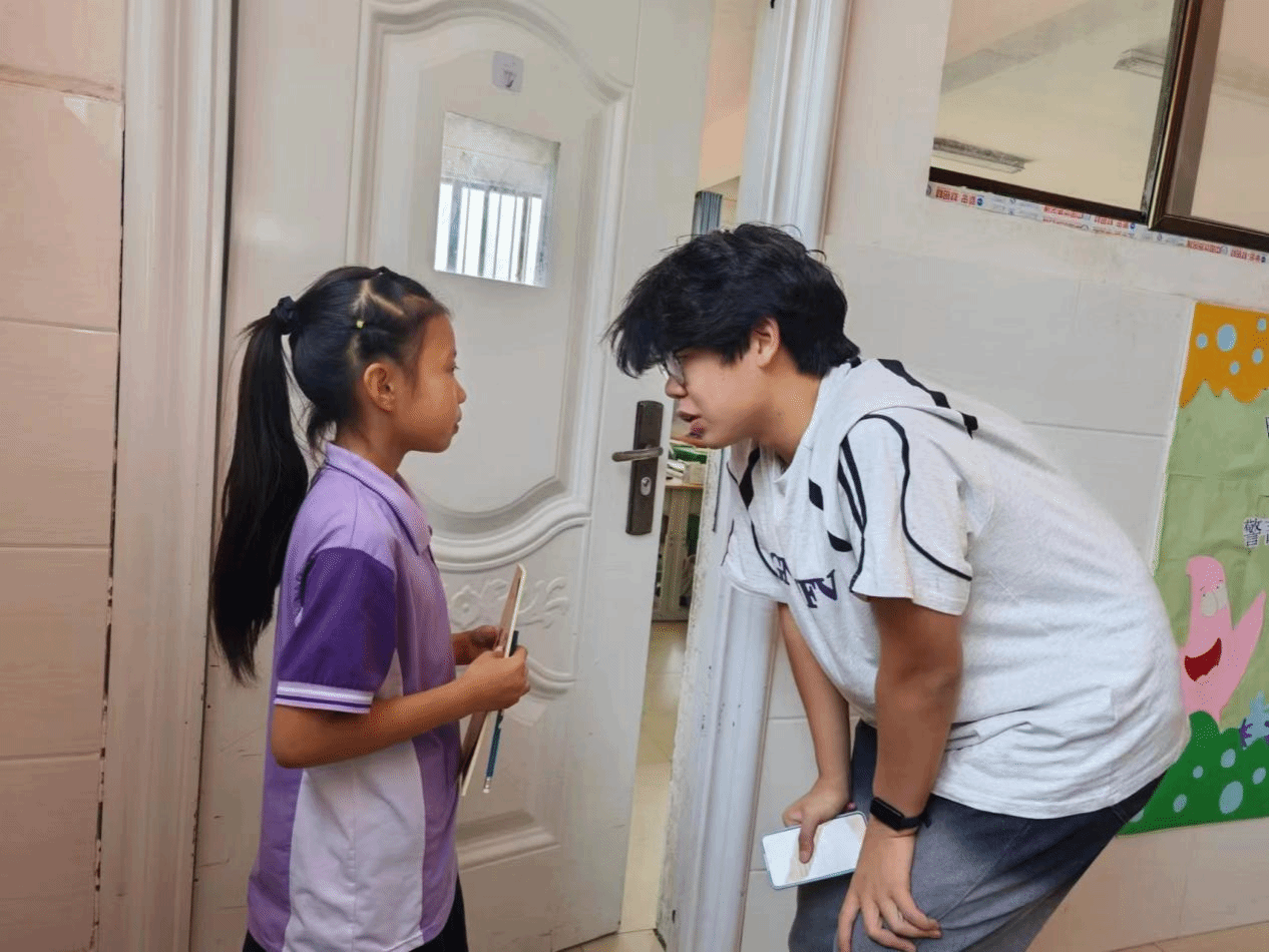 在线下教学时,实践团的成员与学校的老师进行了交流,了解学生学习情况和学校的教育现状,听取并记录了校方的具体要求。实践团成员因为初次支教而显得有些羞涩和紧张,但是孩子们的纯真逐渐感染到了大家,实践团成员们与小同学们之间的关系越来越融洽。