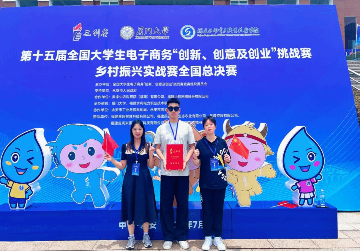 在乡村赛道中,由刘维、王景玫老师指导,单博梁、赵书悦、洪璇、韩璐、吴梦等同学组成的 “助力乡村富裕小队” 团队,凭借贴合乡村发展实际的项目,一路过关斩将,最终喜获全国总决赛二等奖。