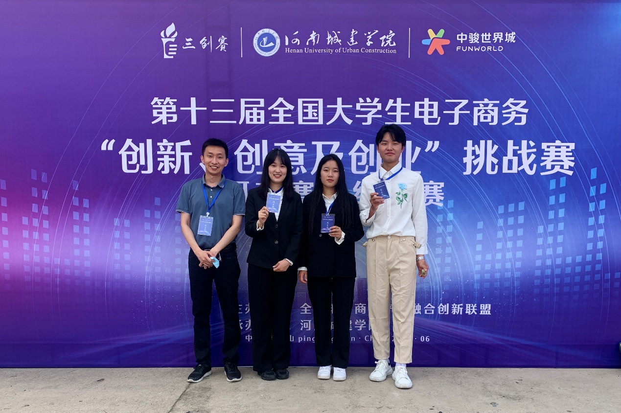 4支队伍进入决赛,经过激烈角逐,由王景玫、李朝阳老师指导,付若瞳、方诗妍等同学为团队成员的“归巢文旅”项目斩获特等奖、单项奖最佳创业奖;由李朝阳、郭艳老师指导,蔡凌志、王宁等同学为团队成员的“河南工大电子商务”团队获得数据分析实战赛道三等奖;学校荣获优秀组织奖。