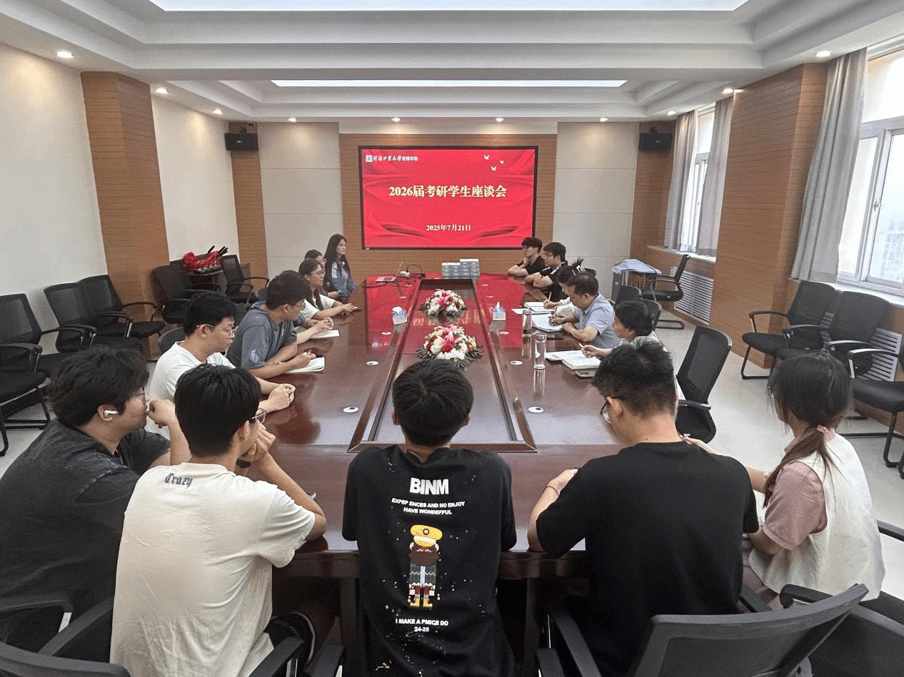 在3558会议室召开暑期留校考研学生座谈会,学院党委书记李国仓、党委副书记曹启娥,与留校考研学生代表面对面交流,为大家加油鼓劲。会议由学院团委书记、2022级学生辅导员郑媛媛主持。